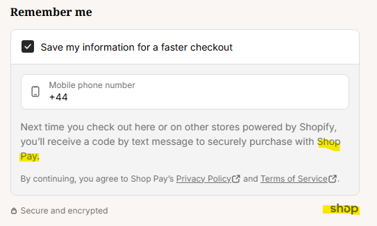 When you make a purchase with us using Shop Pay, Shop Pay handles the payment process directly. This means your saved details are retrieved and processed through their secure system, ensuring a smooth and secure transaction.